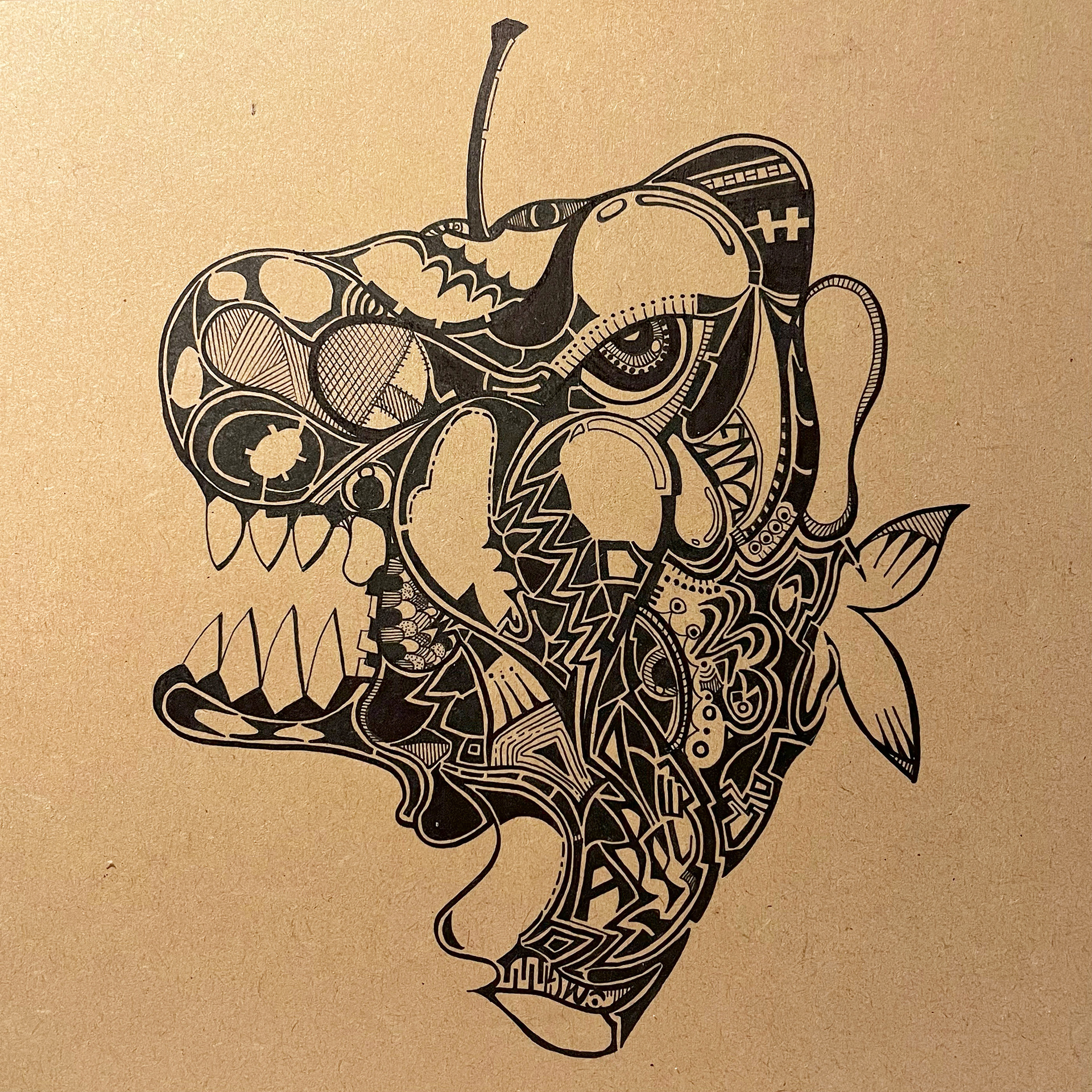 "A fish that parasitized an apple. Although it was supposed to be the parasite, the fish gradually finds its body taken over and loses its sense of self. When you read this, what did you feel and think? I want to avoid being consumed and retain my sense of self."